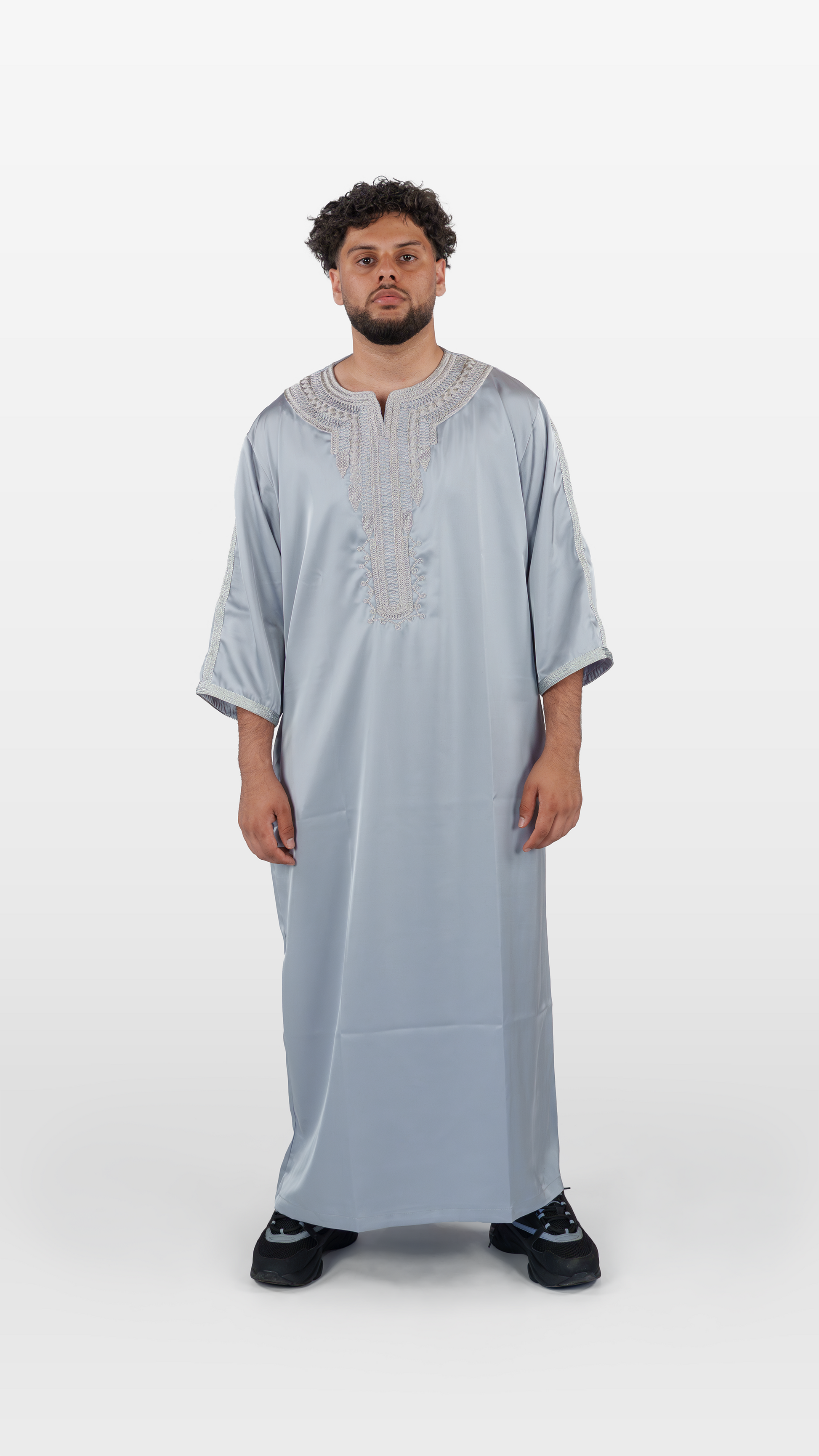 Gefertigt aus hochwertigem Feinsatin-Stoff, überzeugt sie mit einem angenehmen Fall, dezentem Glanz und präziser Stickerei. Ob im Alltag oder zu besonderen Anlässen – diese Jalabiya bringt Charakter, Komfort und Klasse in dein Outfit.