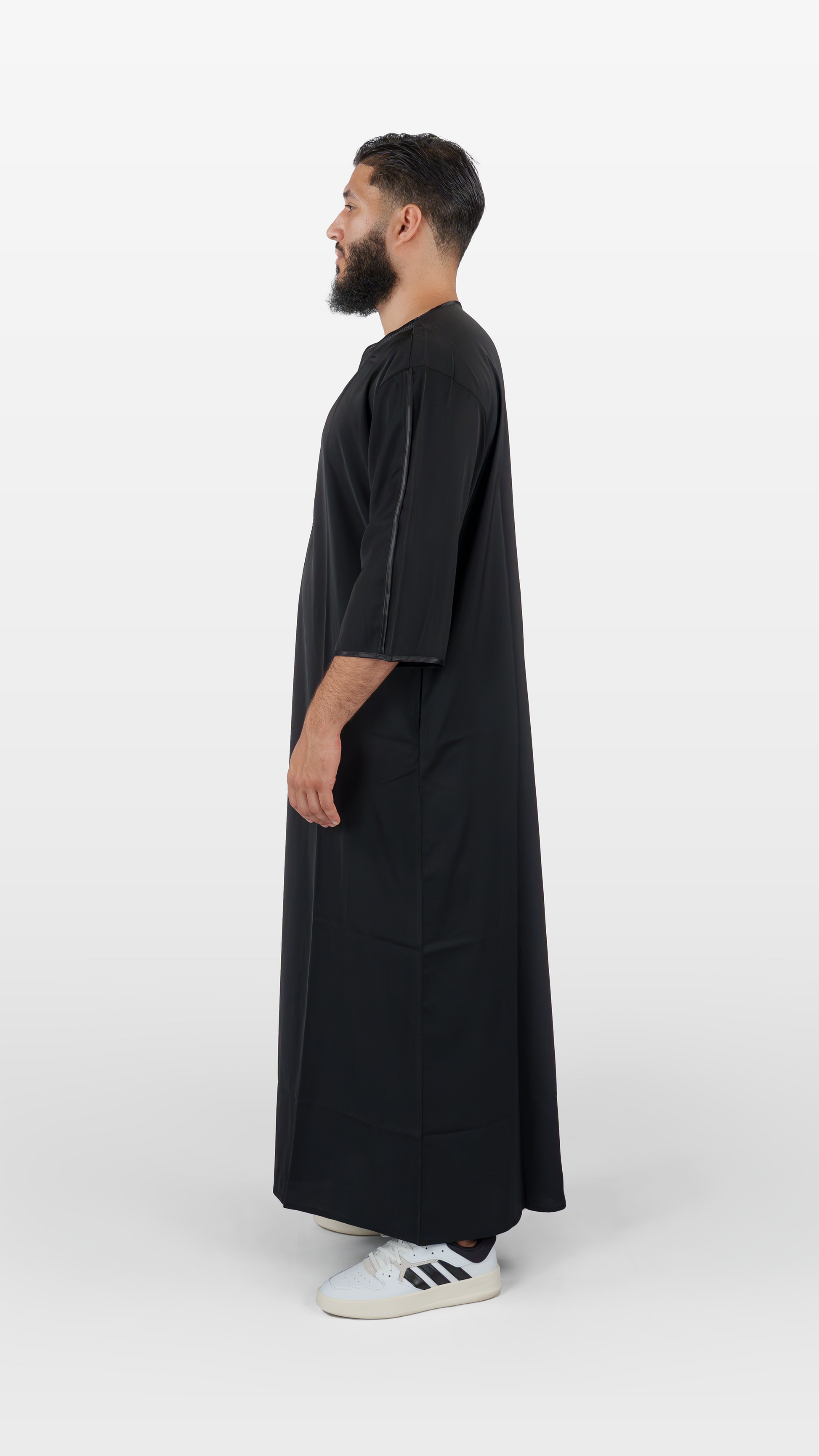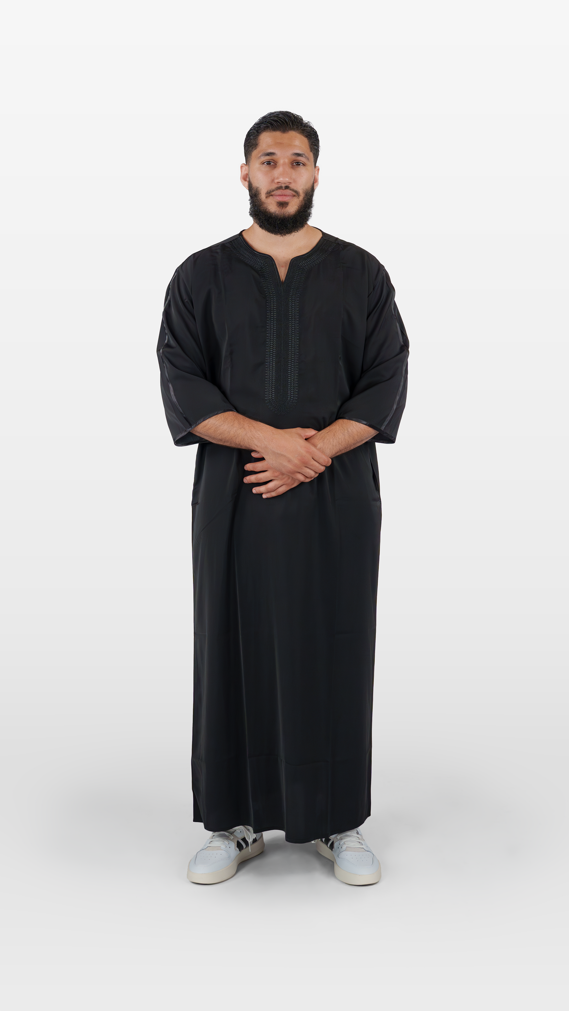 Gefertigt aus hochwertigem Feinsatin-Stoff, überzeugt sie mit einem angenehmen Fall, dezentem Glanz und präziser Stickerei. Ob im Alltag oder zu besonderen Anlässen – diese Jalabiya bringt Charakter, Komfort und Klasse in dein Outfit.
